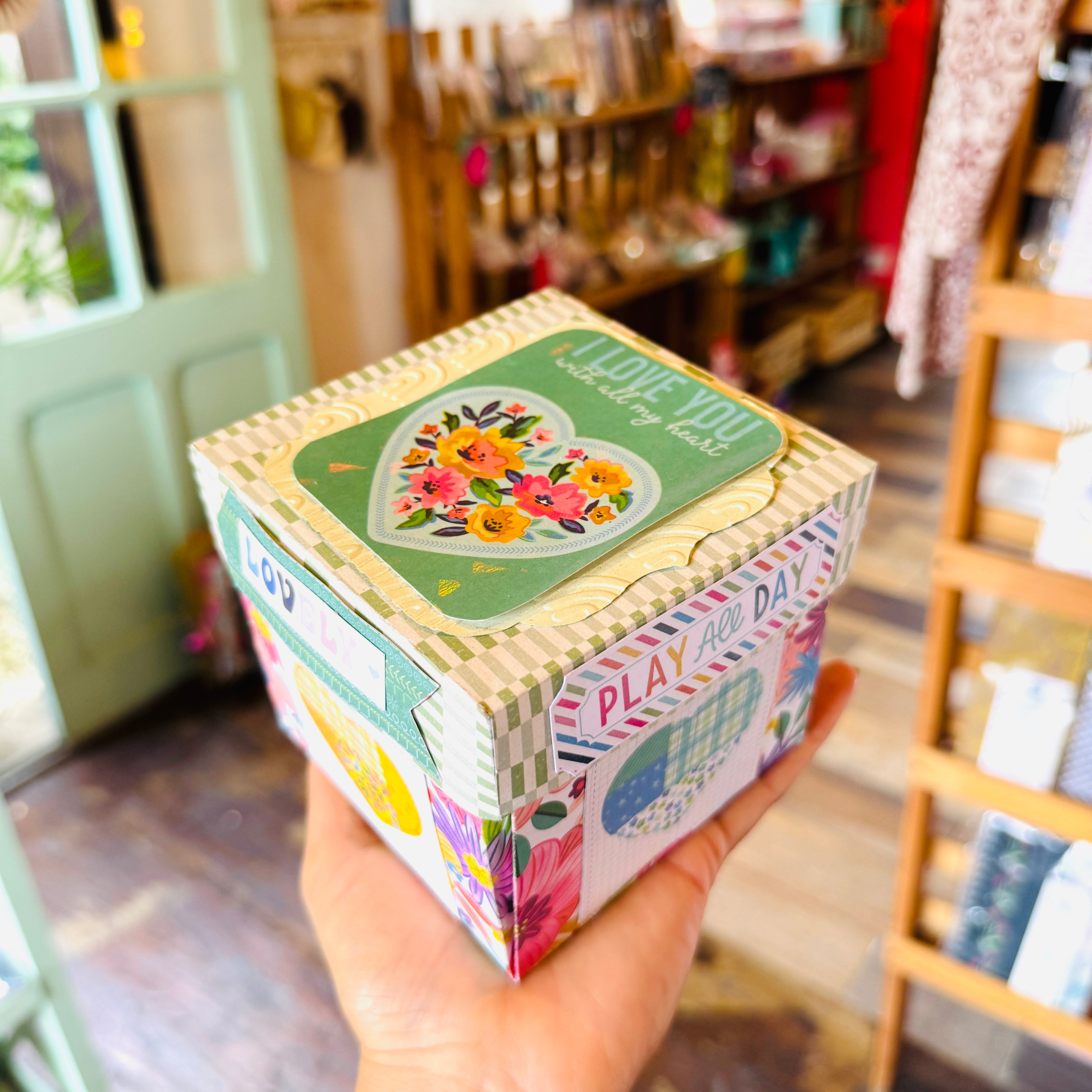 Valoramos lo auténtico, lo hecho con calma y dedicación. En cada caja, tarjeta o álbum, hay un pedacito de magia artesanal, único e irrepetible, como quien lo recibe.