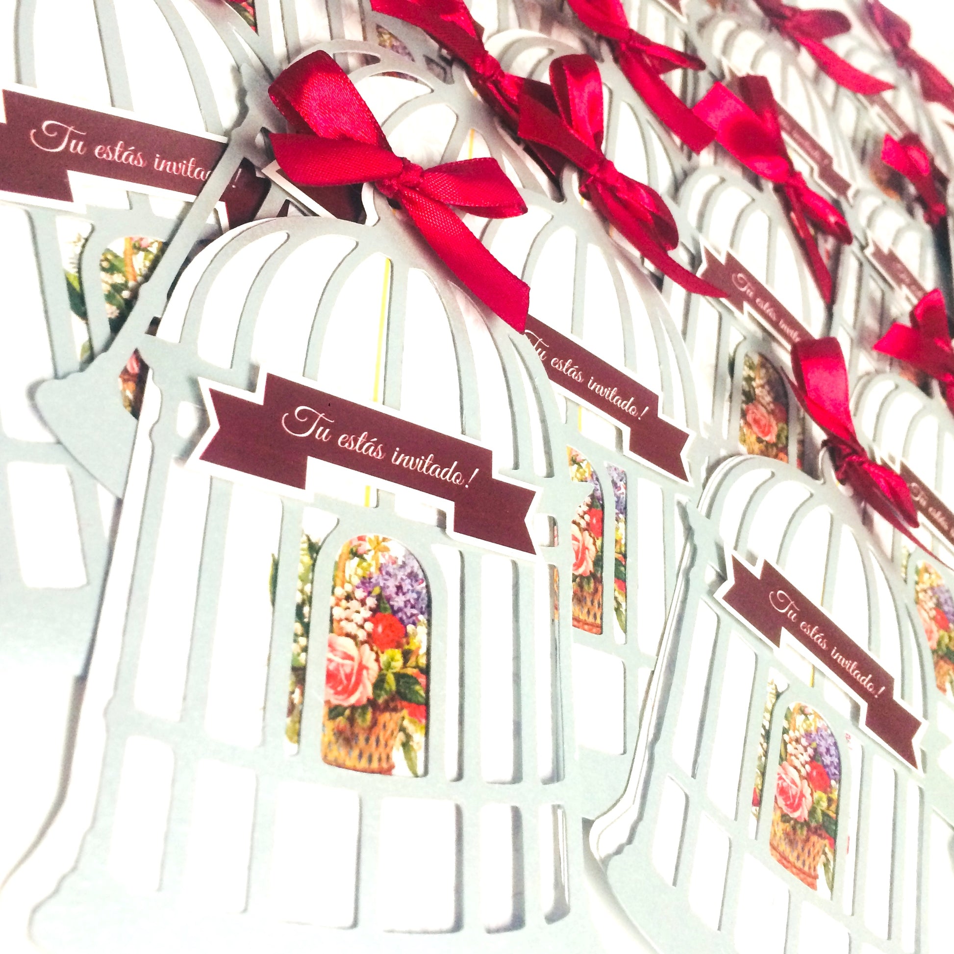 ¡La Invitación Jaula es la perfecta combinación de vintage y romántico! Perfecta para tu quinceañera, esta invitación de jaula te hará sentir como en la nube. ¡No hay mejor manera de invitar a tus amigos a tu gran día!
