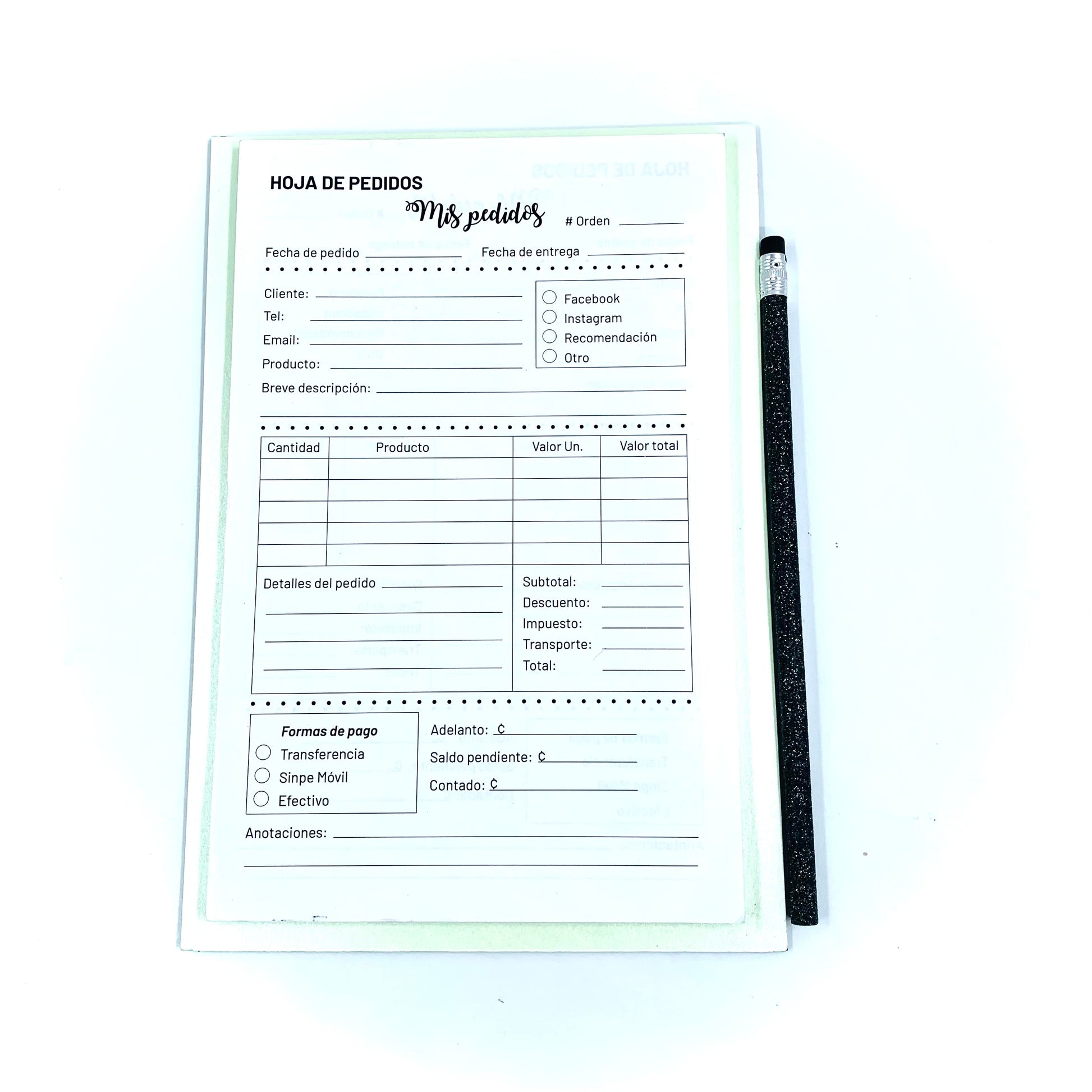 Esta libreta para pedidos es imprescindible para mantener tus pedidos organizados. Con 50 hojas en un hermoso color menta, puedes escribir fácilmente tus pedidos con el lápiz incluido. ¡Nunca pierdas un pedido importante de nuevo!